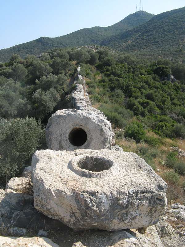 Elemente der römischen Siphon-Wasserleitung bei Patara: Jeder Stein wiegt rund 800 Kilogramm (Foto/©: Cornelis Passchier, JGU)