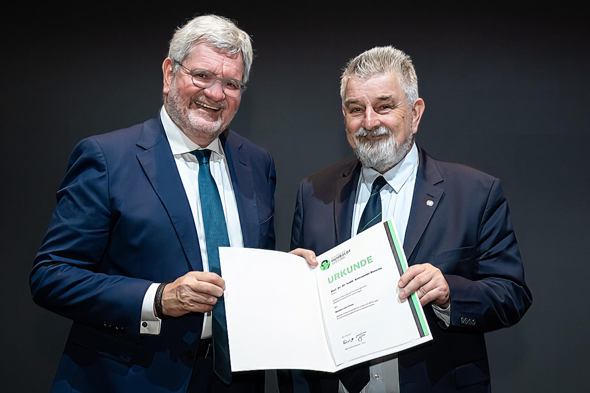 Robert Schlögl, Präsident der Alexander von Humboldt-Stiftung (li), und Aleksander Bursche (re) bei der Preisverleihung im Rahmen der Jahrestagung der Stiftung in Berlin. Foto: Benjamin Pritzkuleit, © Humboldt-Stiftung