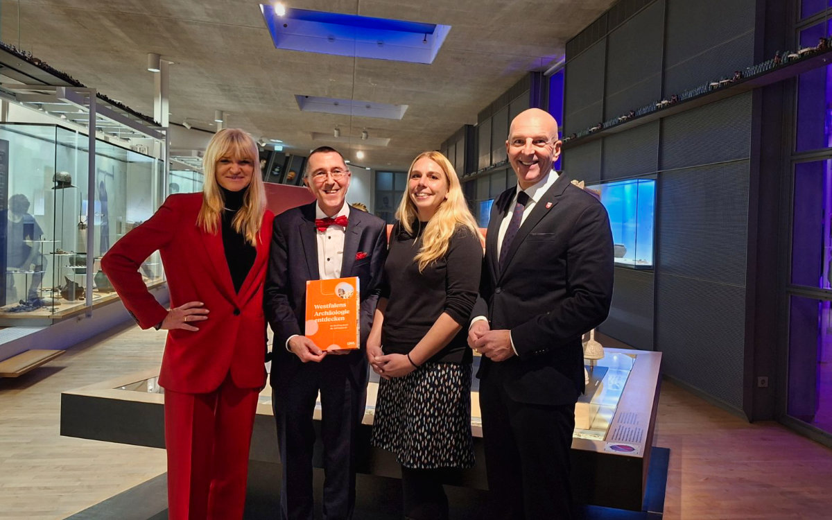 LWL-Direktor Lunemann übergab dem scheidenden Wissenschaftler das erste Exemplar der Publikation »Westfalens Archäologie entdecken. Ein Streifzug durch die Jahrtausende«, die der LWL zu Rinds Ehren herausgibt. 344 Seiten liefern Einblicke in die Vergangenheit Westfalens. In 90 Texten werfen vor allem Archäologie-Fachleute aus Westfalen den Blick auf spannende Orte, auf Ausgrabungen und Forschungsprojekte aus den vergangenen 17 Jahren. Der Band veranschaulicht mit zahlreichen Abbildungen, QR-Codes, Karten und einem Zeitstrahl die Einblicke in die Arbeit der LWL-Archäologie. Die vorgestellten Fundplätze reichen zeitlich von der ausgehenden Eisenzeit bis zum Ende des Zweiten Weltkriegs. Die Publikation ist ab sofort in den drei archäologischen Museen in Herne, Haltern und Paderborn erhältlich (15 Euro).