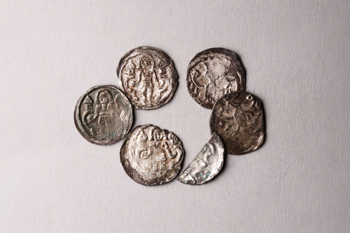 Die Silbermünzen mit einem Durchmesser von 1,5 Zentimetern datieren in die zweite Hälfte des 13. Jahrhunderts, in die Regierungszeit der askanischen Markgrafen Otto IV./Otto V. (1260/65-1293). Auf der Vorderseite ist der stehende Markgraf zwischen zwei, je auf einem Doppelbogen ruhenden Kuppeltürmen zu erkennen, auf die Rückseite ist ein gekrönter Adler geprägt.