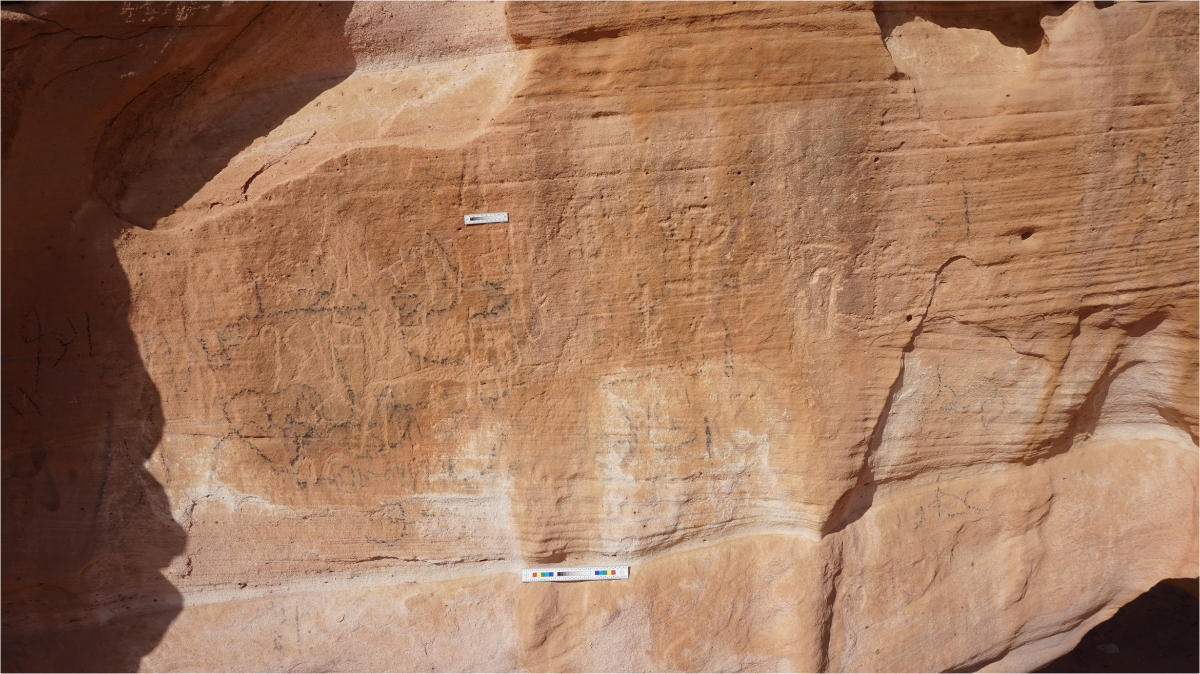 Auch in anderen als »Wadi« bezeichneten Trockentälern des Sinai, dem Wadi Ameyra und dem Wadi Maghara, haben die Ägypter grafische Inszenierungen kolonialer Dominanz hinterlassen. »Zusammen mit der nun entdeckten Felszeichnung im Wadi Khamila lässt das eine Art koloniales Netzwerk der Ägypter erahnen«, sagt Morenz. Offenbar lud die prominente Lage in der Landschaft, die gute Sichtbarkeit des Felsens, seine glatte Oberfläche und seine Verbindung zu traditionellen Rastplätzen zur Beschriftung ein. »Historisch ist es häufig so, dass an Orten mit gut sichtbaren Felsinschriften erneut geschrieben oder sogar überschrieben wird«, berichtet Morenz. Auch bei dieser Felsinschrift stellte der Ägyptologe mehrfache Überschreibungen bis hin zu arabischen Graffiti aus den letzten Jahren und Jahrzehnten fest.